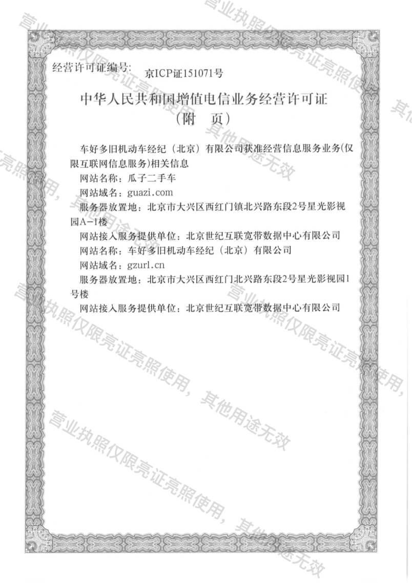 增值电信业务经营许可证